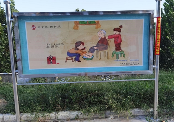 四、設置宣傳載體,營(yíng)造文明家園濃郁氛圍。今年,集團公司為郭崗村提供3萬(wàn)余元幫扶資金幫助其打造了精神文明專(zhuān)欄,分為家風(fēng)家訓(名人家風(fēng))專(zhuān)欄,“講文明 樹(shù)新風(fēng)”(孝當先、傳承家風(fēng))、“文明健康 有你有我”公益廣告等內容,使社會(huì )主義核心價(jià)值觀(guān)深刻融入到村民的生產(chǎn)生活和精神世界,形成全體村民的修身行善共識和明禮守法自覺(jué),為促進(jìn)郭崗村經(jīng)濟健康發(fā)展、構建美麗鄉村、文明家園打下良好根基。